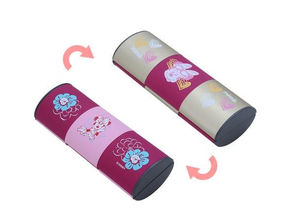 フタを開けてさらに開くと、回転してもう一つの柄になるユニークなトリックケースです。ケース本体をすっきり見せるマグネット式開閉。