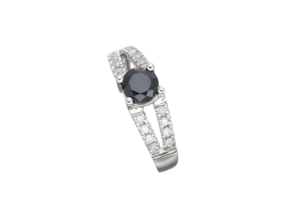 10k White Gold Split Shank Black and White Diamond Ring (1 cttw)