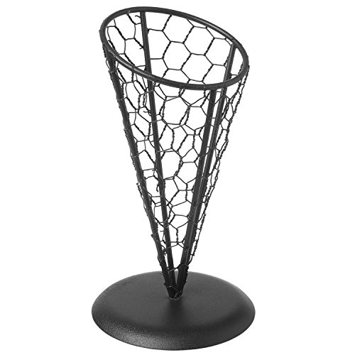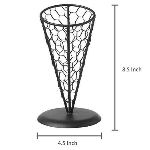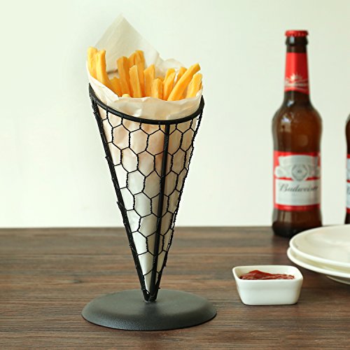 Studio : MyGift Publisher : MyGift Product Description You can now serve your finest foods with finesse when you display them in this metal cone stand. A unique chicken wire mesh design gives a fun flair to this french fry holder. Not only can this cone hold delicious french fries, it can easily display an array of appetizers, snack and so much more. Toss in fresh carrots and celery for a healthy after school snack. Fry up some fish and chips for a more British take on this farm-style container. Any way you choose to utilize this serving cone, your food will be displayed in style. **Official MyGift® product** French fries not included. Approximate Dimensions (in inches): 8.5 H X 4.75 Diameter. 0 |
