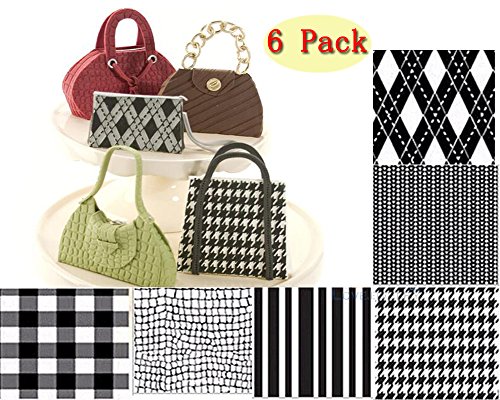(Set of 6)Fondant Impression Mat Mould,Grid texture, geometry, Handbag, textures, hair Fondant Imprint Mats- Plastic----Cake Decorating Supplies for Cupcake Wedding Cake Decoration Tools