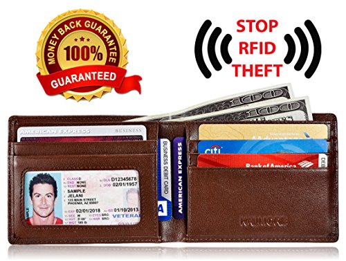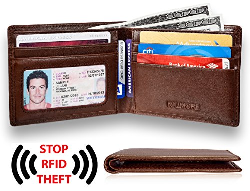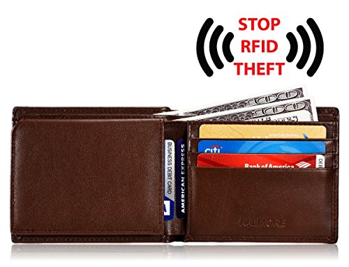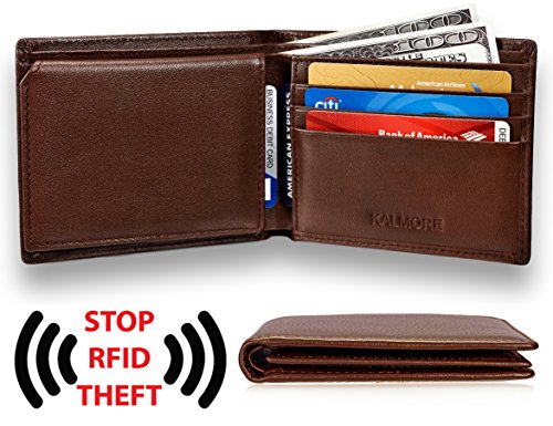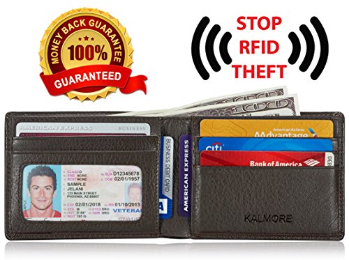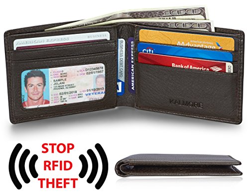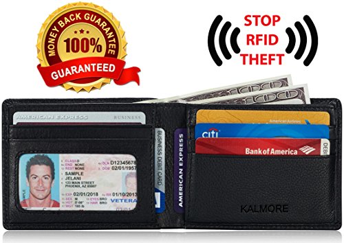 PROTECT YOURSELF from IDENTITY THEFT! KALMORE wallets are equipped with advanced RFID Secure technology by using unique military-grade proprietary blocking material and made of 100% genuine leather with top quality from heritage of craftsmanship. The wallets are scratch resistant and durable, and has 6-8 card slots and an ID window for convenient quick access ID window with slim and stylish design, which make it convenient and suitable for daily life! RFID chip is pre-installed to block RFID readers from scanning your credit cards, debit cards, banking information, smartcards, RFID driver's licenses and other RFID cards. PROTECT YOURSELF, SECURE YOUR IDENTITY AND YOUR CARDS FROM TODAY! FEATURES AND BENEFITS: - 100% premium quality genuine textured/full-grain leather.