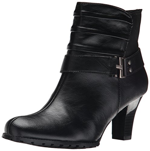 This stylish ankle boot is ruched and accented with an ankle strap with buckle adornment. There's a splash of biker style to make you feel invincible, and an overall chic look that's pure girly. A 2¾" stacked heel, zipper entry and comforting memory foam footbed give you comfort and convenience.Feature