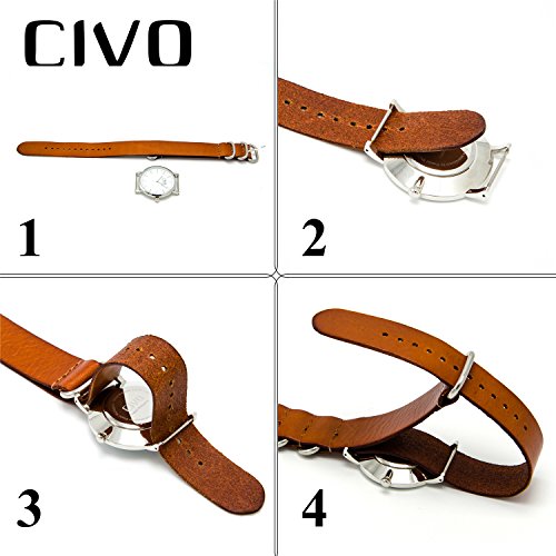 -. Feature : RICH COLORS AND WIDTH SELECTION: Get multiple once will bring you surP.R.Ise. Swapping between rich colors enable you to easily spice up a normal outfit and add style to your life. To select width, measure width of watch lug or width of current band at connection point and then select width closest to measurement (18mm, 20mm, 22mm) / TOP GRAIN LEATHER AND HARDWARE: Premium genuine leather (flexible, shiny), slim rectangular hardware (stainless steel) with polished, brushed, PVD, and gold finishes, stitched construction. Our CIVO NATO genuine leather straps stand out from other regular watch straps on market due to higher quality leather material, hardware finish options, and stitched construction. Textured yet breathable / PERFECT CONSTRUCTION: Different from Knockoffs using cheap glue and stitching, which will encourage the growth of bacteria and become smelly, CIVO bands are stink-free, while stitched construction and laser cut to avoid fraying / EASY TO INSTALL, AND ADJUSTABLE LENGTH: 1 high quality sP.R.Ing bar tool and 4 neighboring size stainless steel sP.R.Ing bars are provided for changing your watch band, and what's more, an elaborate CIVO watch band manual is also provided to teach you how to switch between different watch bands and how to find the best way to wear our watch bands. When you feel the watch band is too long, you can adjust the length or change the way you wear it according to our CIVO watch band manual / FIT NEARLY ALL WRISTS: 10.5 inches in length and 3 size in width (18mm, 20mm, 22mm). CIVO watch band length fits wrists from 5 to 8.5 inches in circumference, which covers most of the population, and when you feel the watch band is too long, you can adjust the length or change the way you wear it according to our CIVO watch band manual. To select width, measure width of watch lug or width of current band at connection point and then select width closest to measurement (18mm, 20mm, 22mm)