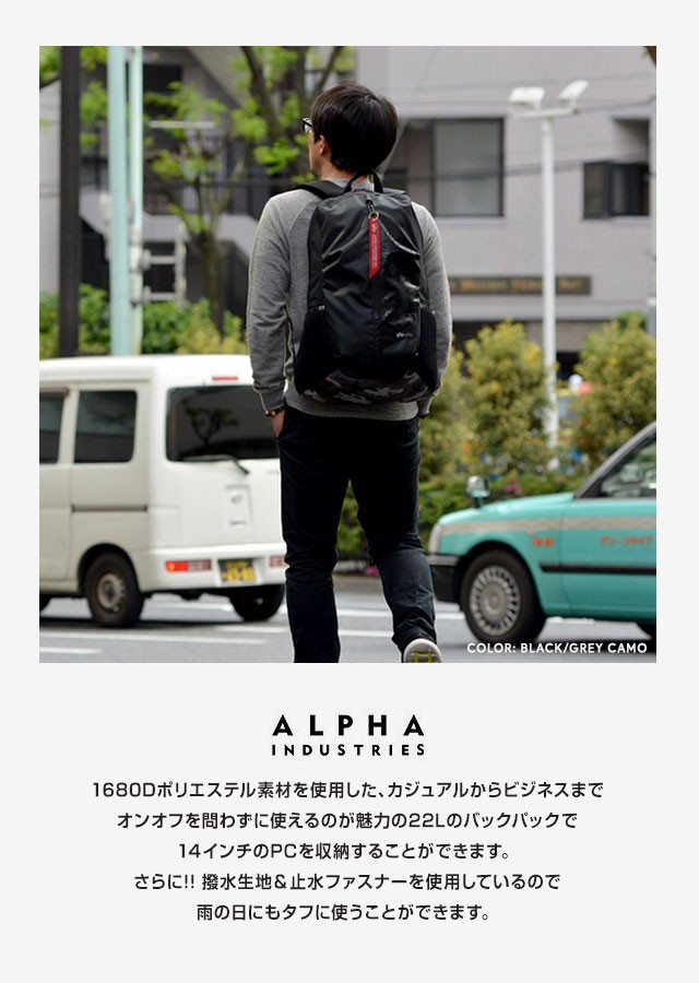 | 商品名 | ALPHA INDUSTRIES アルファインダストリーズ リュック バックパック 22L ブラック 迷彩 当店限定モデル 送料無料 【取寄商品】 | ||
