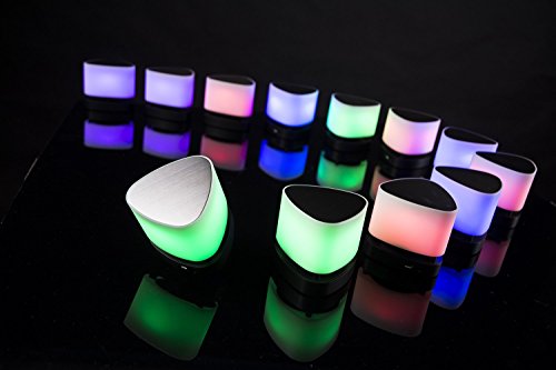 -. Feature : Portable smart speaker with app to change colors from smart phone / Mini portable Bluetooth speaker with smart phone app's / High quality mini speaker for night-table / Bluetooth 4.0 With 6 hours continuous play via LI-PO rechargeable battery / Chrome finish touch control top to change colors