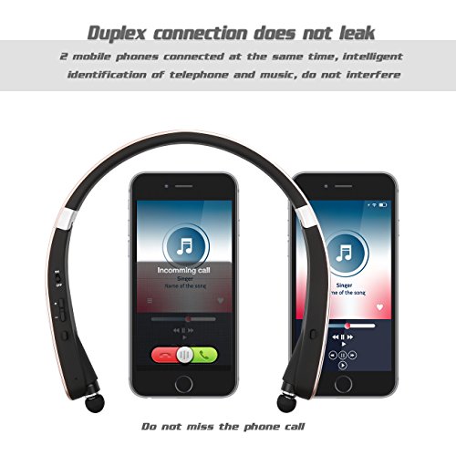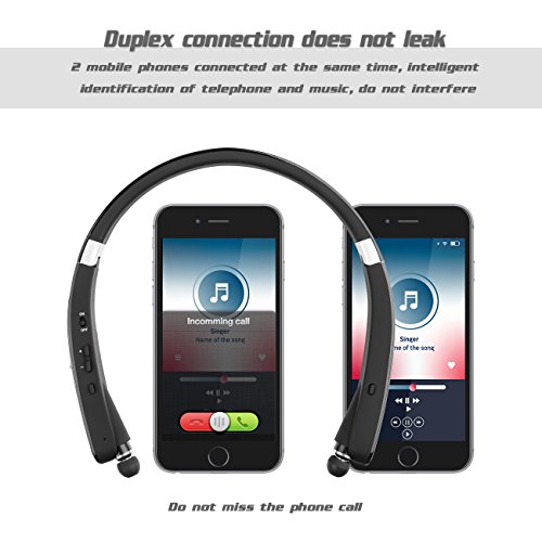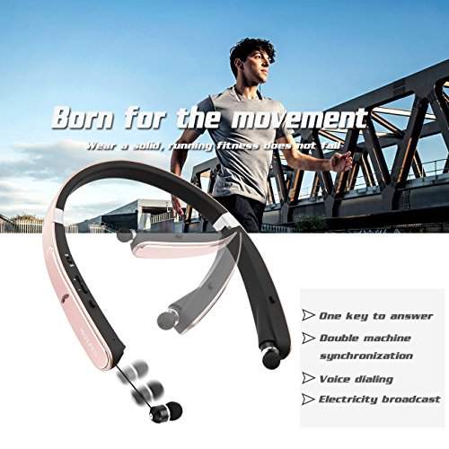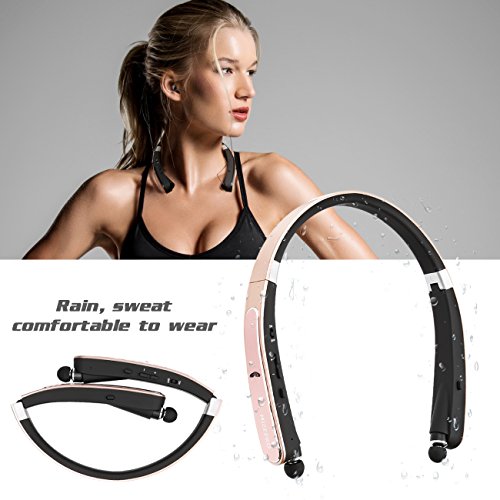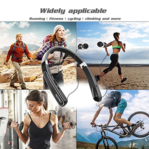 -. Title : Foldable Bluetooth Headset, Wireless Neckband Sports Headphones with retractable Earbuds,( Bluetooth 4.1 Stereo Earphones, Noise Cancelling, Sweatproof, 16 Hours Playtime)