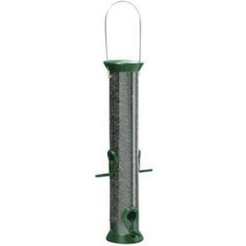 Droll Yankees Bird Feeder, Hanging Sunflower Tube Feeder, New Generation CJM15G, 15 Inch, 1 Pound Seed Capacity, 4 Ports, Green