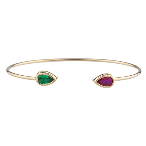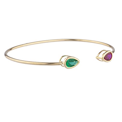 -. Title : Created Ruby & Simulated Emerald Pear Bezel Bangle Bracelet 14Kt Yellow Gold Plated Over .925 Sterling Silver