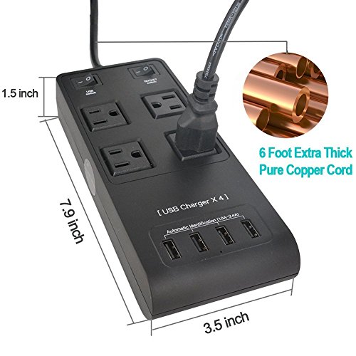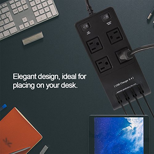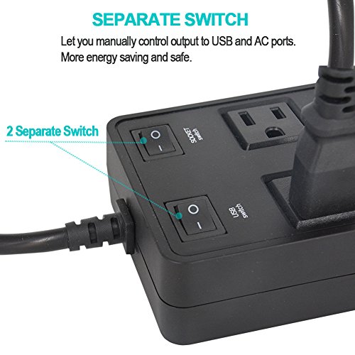 ★ Separate Switch Control - Featuring 4 AC outlets and 4 USB ports, 2 Individual control switches let you manually control output to USB and AC ports. More energy saving and safe, you can easily power appliances such as blow-dryers, irons, and heaters, perfect with your nice home, office and travel power supply.