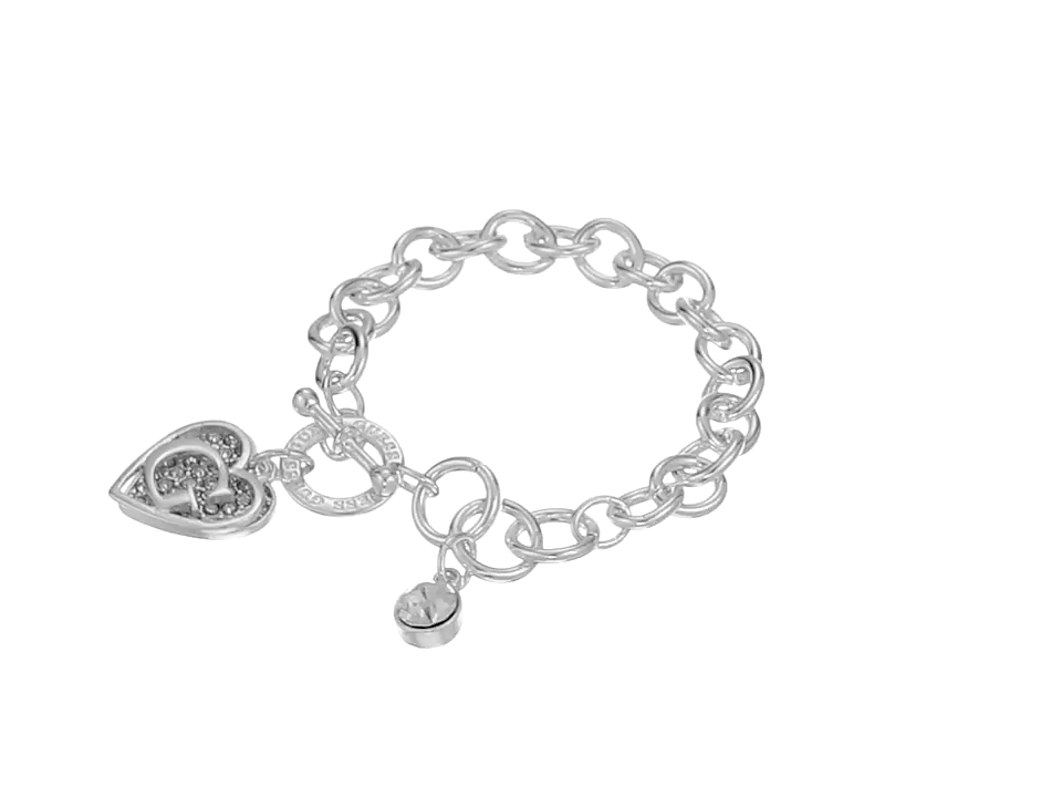 Guess Toggle Chain Bracelet with Logo Heart Link Charm Bracelet