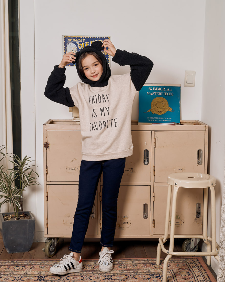 9, 11, 13, 15, 17호로 준비되어 있으며 하단에 측정된 사이즈 표를 참고해 주세요. 유리안은 149cm에 33kg으로 다소 마른 체격이며, 딱 맞게 진청 13호를 착용하였습니다. 깔끔한 핏으로 잘 맞네요 :)