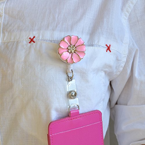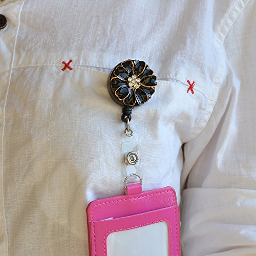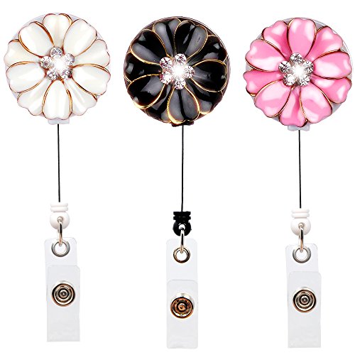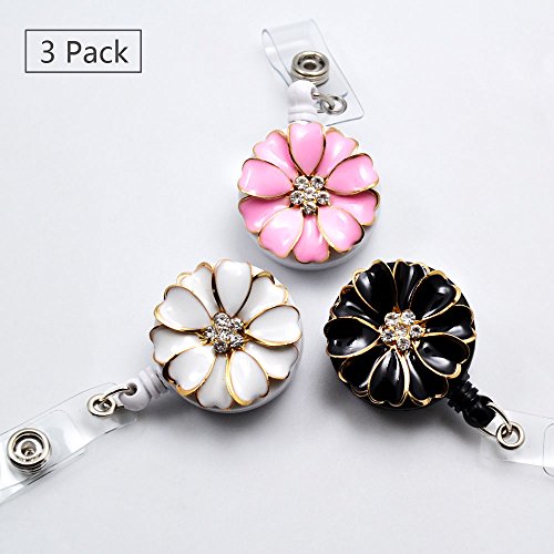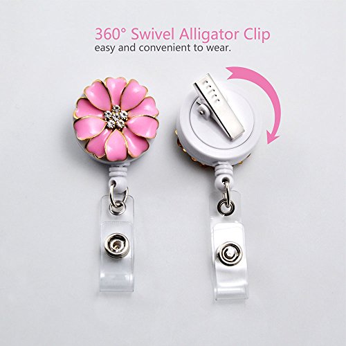 Qinsuee Retractable Badge Holder with Alligator Clip, 24 inch Retractable Cord, ID Badge Reel with Camellia, 3 Pack (Multiple)