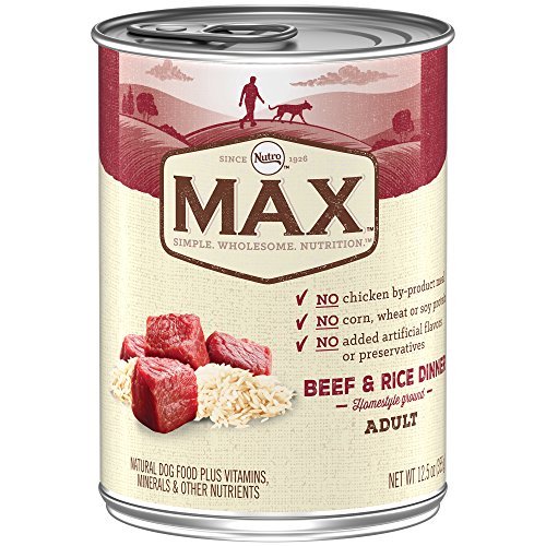 -. Title : NUTRO MAX Adult Beef and Rice Dinner Canned Dog Food 12.5 Ounce Cans (Pack of 12); Rich in Nutrients and Full of Flavor; Supports Healthy Joints & Healthy Skin and Coat