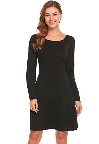 Women's Long Sleeve Casual A-Line Mini Party Dress,Black,S