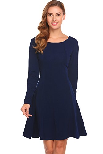 Womens Round Neck Long Sleeves A-line Casual Tshirt Dress,Navy Blue,M