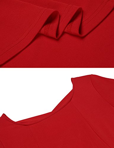 Women Long SLeeve A-line knee-length Casual Vintage Fit and Flare Swing Dress,Red,XL