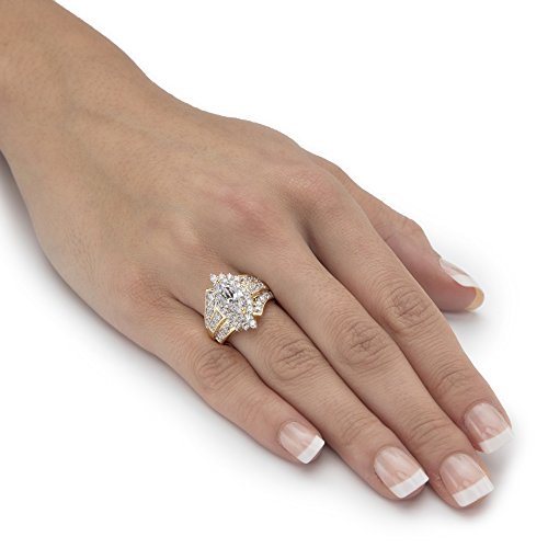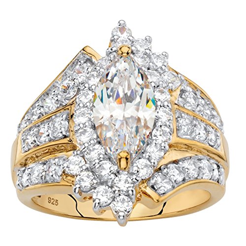 -. Title : 18k Gold over .925 Silver White Marquise Cubic Zirconia Triple Row Cocktail Ring