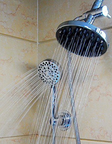 WantBa Ultra-luxury Rainfall/handheld Spa shower Combo with 6 Feet Stainless Steel hose High Pressure Wall Mount Shower Head Plus 5 Setting Handheld and Suction Cup Handheld Holder Polished Chrome
