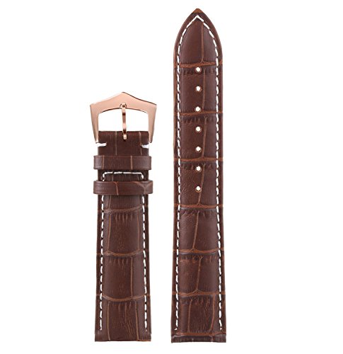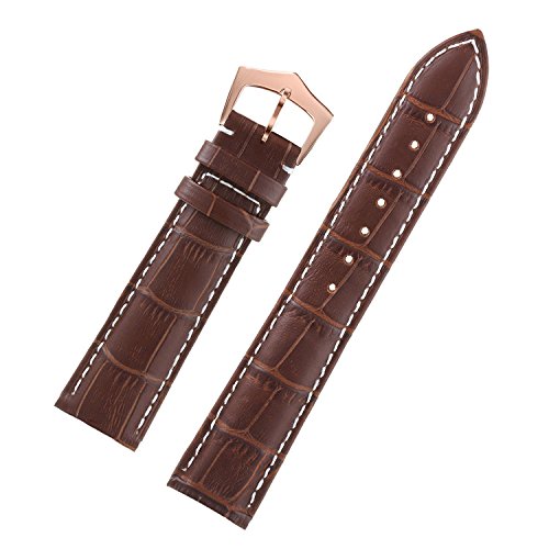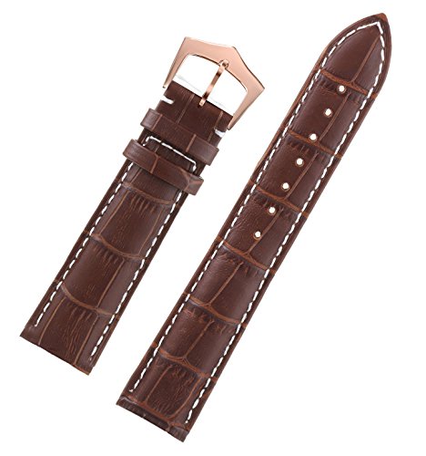 -. Feature : Brown genuine leather watch bracelet with accentuated contrasting white stitch, decent rectangular scales, and rose gold pin buckle attachment of stainless steel. Length: 75mm+119mm. Height: average 4mm. Width: 12mm. buckle width: 10mm. / Only the best and high-grade materials were selected and processed under strict quality controls. We use full grain Italian calfskin for this strap which owns its silky shine through matte finish. Moderate padding and premium leather provide maximum comfort and style. / Special treatment joins upper and lining leather seamlessly and ensures a high level. This watch band meets many physical requirements, such as tensile strength, suppleness, color fastness and resistance to sweat, all of which guarantee its longevity. Since our watch strap is water resistant, please keep it away from water during bath and swimming. / These watch straps are available in several colors and designs: black leather with black stitch, black leather with white stitch, brown leather brown stitch, brown leather with white stitch, dark brown leather with dark brown stitch, dark brown leather with white stitch. And buckles of four different colors also available for your desired look, silver, black, gold, rose gold. / It's specially designed and made for your luxury watches. It can be applied to watches with standard straight lug ends, such as Tissot, Longines, , , Mido, Omega, , , Tudor, Movado, Rado, Hamilton, Titoni, Certina, , Swiss Military, MontBlanc, Girard-Perregaux, Carl F.Bucherer, , Kronsegler, Jaeger, Invicta, Zenith, Ranceas, Timex, DAVOSA, Oris, etc.