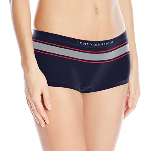 Tommy Hilfiger Women's Seamless Boyshort Panty, Peacoat Logo Stripe, Large