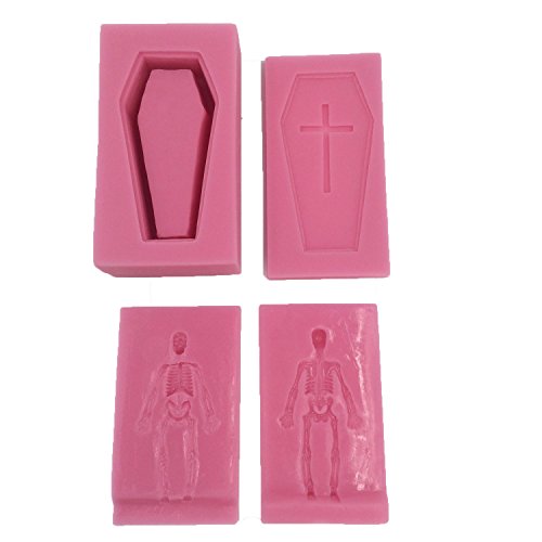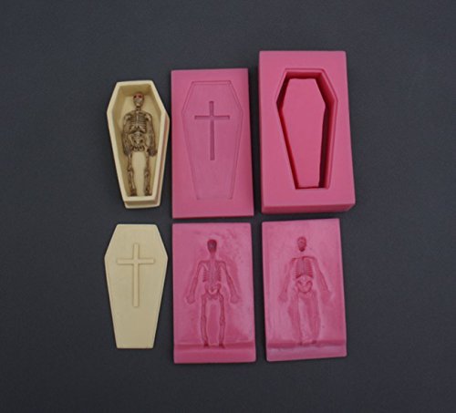 Funshowcase 3D Halloween Skeleton with Matching Sarcophagus Coffin Silicone Mold for Fondant Cake Decoration, Polymer Clay, Crafting, Resin Epoxy