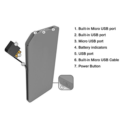 Built-in Cable: The Portable Charger is rechargeable and can charge your android phones without external micro usb cable.