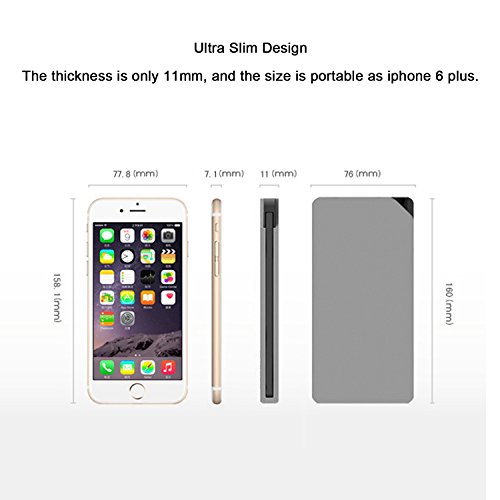 Ultra Slim: The 10000mAh Power Bank is very compact, only 11mm thickness, poratble for traveling.