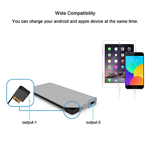 The power bank can charge two of android smartphones or iPhone at same time.