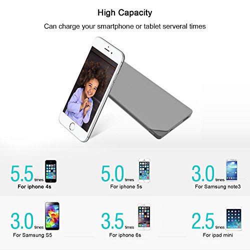 High Capacity: the external battery pack can charge your iphone 6 for 4-5 times, charge Samsung S6 for 3-4 times.