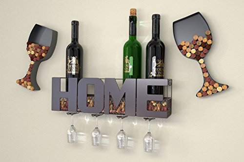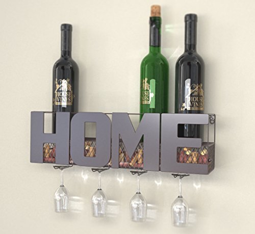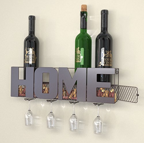 HOME Wall Mounted Metal Wine Rack with 4 Long Stem Glass Holder - Wine Cork Storage - Gifts for Wine Lovers - by HouseVines