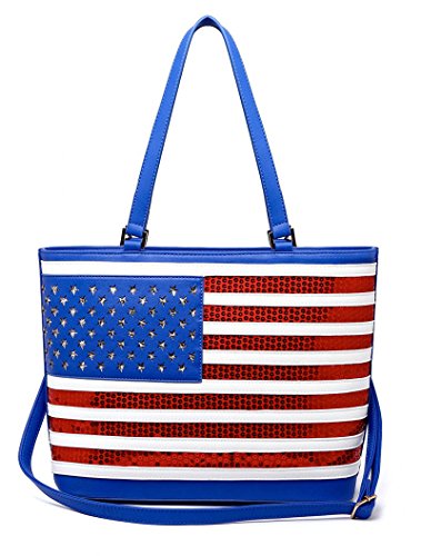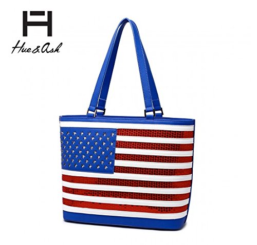 Hue & Ash American Flag Large Handbag, Stars and Stripes, Beads, Bucket Style