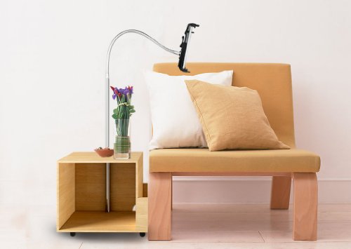 Rolling Tablet Stand - Adjustable Universal Tablet & iPad Floor Stand w/ Gooseneck Wheels & Mini-Cabinet