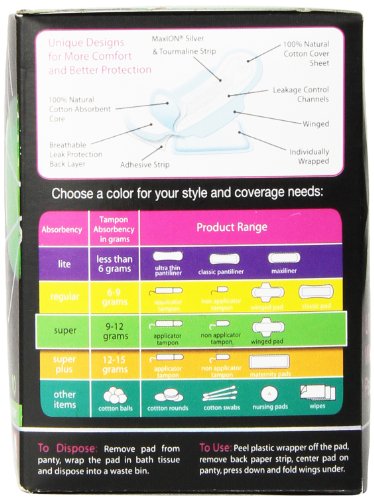 Combining the benefits of our original pure chlorine free cotton line with the natural powers of Silver and Tourmaline Ions, scientifically based detoxifiers that stimulate greater wellbeing and provide an added layer of protection against irritation and odor. When used in a sanitary pad, they can help soothe common symptoms associated with PMS and bacterial vaginosis, a highly occurring disease affecting 29% of the U.S. female population according to the CDC.Feature