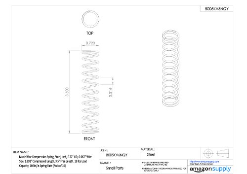 Music Wire Compression Spring, Steel, Inch, 0.72" OD, 0.067" Wire Size, 0.39" Compressed Length, 0.75" Free Length, 18 lbs Load Capacity, 50 lbs/in Spring Rate (Pack of 10)
