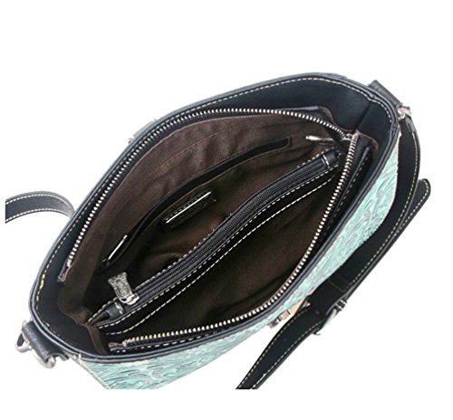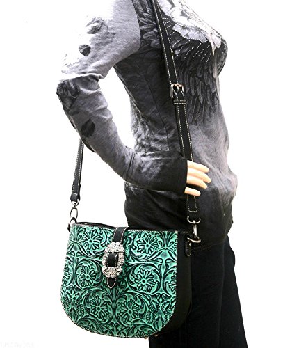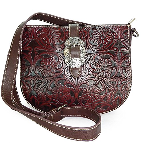 Montana West Small Crossbody w/Floral Tooled Leather Front- Coffee