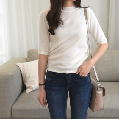 샤베트 라운드넥 하프니트 모던하고 트렌디한 반팔 니트티를 소개해드릴게요 라운드 넥에 하프소매로 간절기나 여름등 다양한 시즌에 입을수 있으며 바디라인에 핏되는 슬림라인으로 체형커버가 되어 슬림하게 연출가능해요 5가지의 컬러감으로 다양하게 초이스 가능하며 얇은 소재감의 니트로 활동하고 움직이는데 좀 더 편안하게 느낄수 있게 제작되었어요 유행타지 않는 심플한 디자인으로 자주 입게 될 아이템이며 슬랙스나 스커트, 데님팬츠, 스키니 등 어떠한 하의와도 쉽게 매치가능한 제품으로 코디에 따라 분위기가 달라지는 아이템이에요 심플하고 모던한 디자인으로 무드있는 룩을 완성해보세요