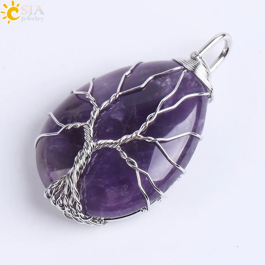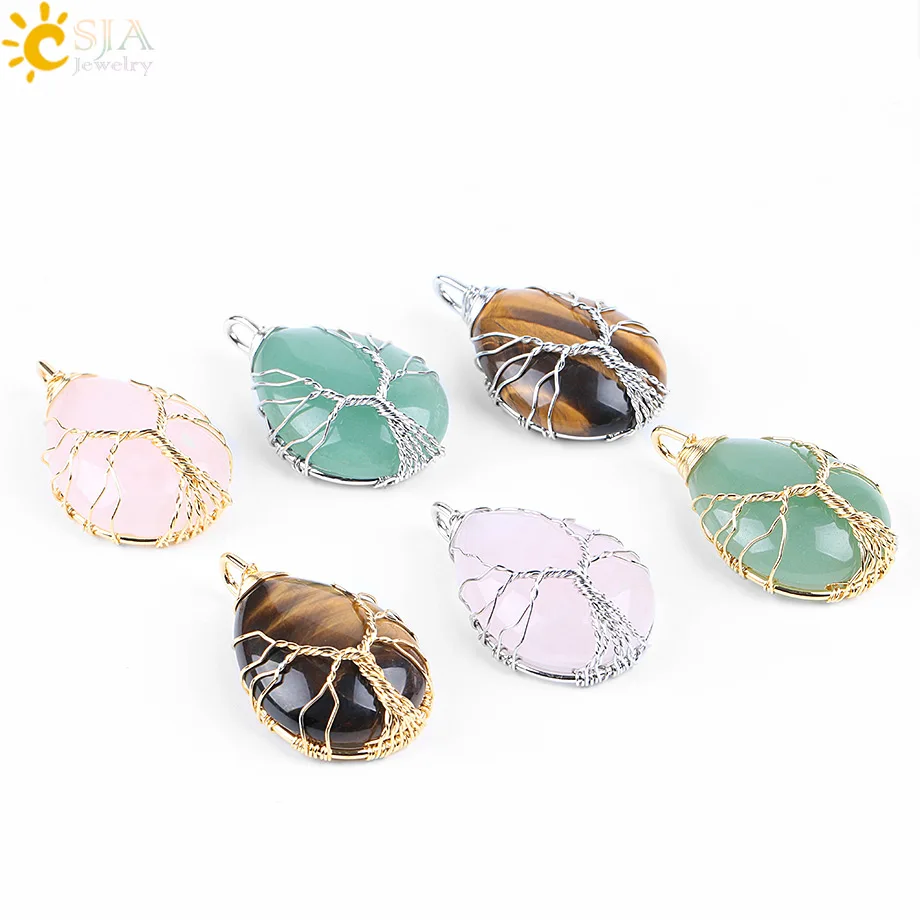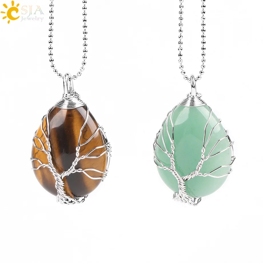 Product Name:Natural Gem Stone Wire Wrap Tree of Life Necklaces Pendants