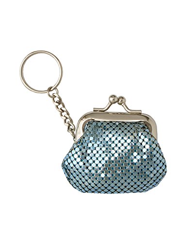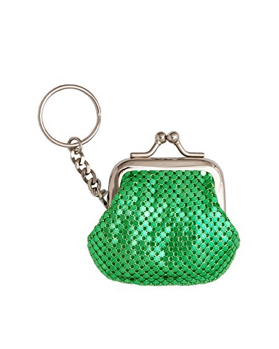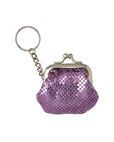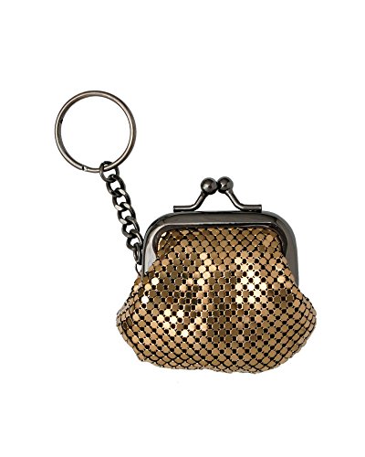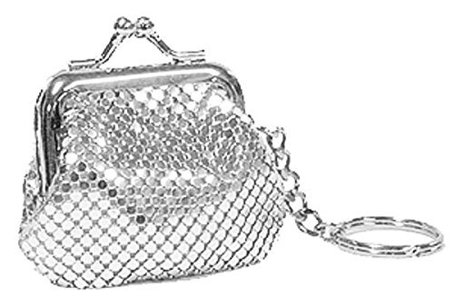 Product Description A stylish and practical key ring with an attached coin purse made of shiny brass mesh. A great gift idea for all ages! Style: 1-1803 3" wide x 2¼" tall x 1" deep Metal frame with kisslock closure Signature Whiting Davis lining 0