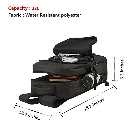 DEMENSIONS: 19.6 x 12.9 x 6.3 inches, fits up to 17 inches laptops. The special PADDING DESIGN in the laptop compartment which is functional enough for helping cushion the backpack to prevent any damages.