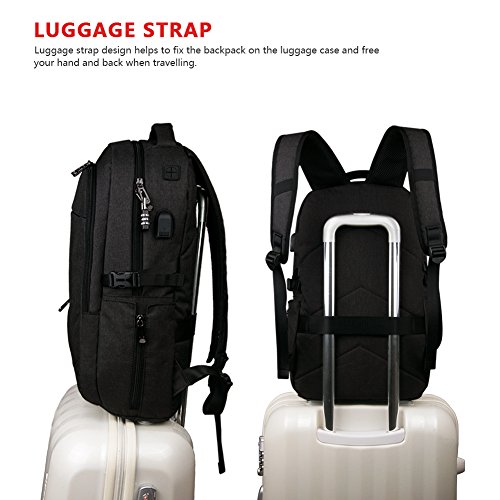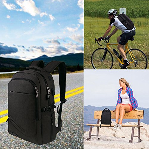 CONVENIENT DESIGN: This practical bag has an USB CHARGING PORT and AUDIO JACK outside, a LUGGAGE BELT DESIGN in the back and a KING RING inside and with an ANTI-THEFT COMBINATION LOCK which is really convenient and friendly for your travel, business, college and daily use.