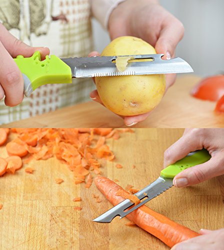 - ✅ STAINLESS STEEL BLADES OF UNPARALLELED QUALITY: no other material can compete with stainless steel which is intrinsically rustproofed, blunt-resistant and extraordinarily hard. FryBee Kitchen Knife remains sharp forever! With this versatile tool you will forget about tiresome and hazardous grinding! Now the blades are equipped with prongs what enables you to peel and cut potato, carrot and other raw ingredients without efforts!