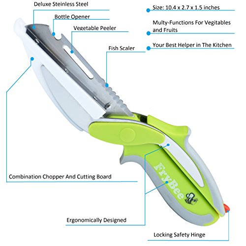 - ✅ CUTTER, CHOPPER, CARVER, SCISSORS, SLICER, CUTTING BOARD AND OPENER – it is all about FryBee Kitchen Knife! Prepare all possible dishes with only one magical cooking unit! Kitchen messes are geared to yesterday, forward-thinking people choose a complex approach to food prep.