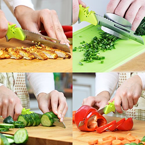- ✅ WELL-ADVISED DESIGN: ergonomic long silicone grips are aimed to deliver you from tiredness while operating with FryBee Universal Knife. Lovely green coloring will suit any kitchen interior, and unbeaten functionality makes the knife a good gift for any occasion.