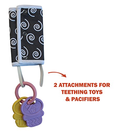 WILL STAY IN PLACE: Shoulder pads have 3 snap buttons to secure them on the carrier. One of the pads has 2 hanging elastic straps to attach teethers, pacifiers, toys & more.