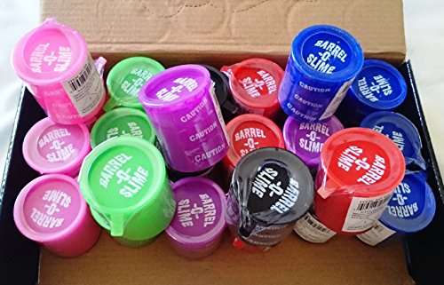You can pull it apart and it rejoins seamlessly! Extremely tactile, great fun and endless potential! Fabulous `messy play` sensory resource. This has to be seen and touched to be believed. There`s nothing else like it! Barrel Containers measure 1.5" in diameter x 2" in Height 24 Barrel of slime, Alssort Colors Recommended for ages 6 & up Barrel-O-Slime makes a great party favor Non Toxic DON'T SWALLOWFeature