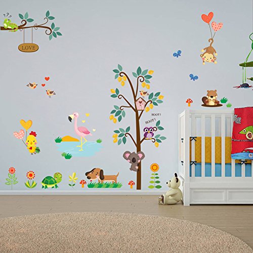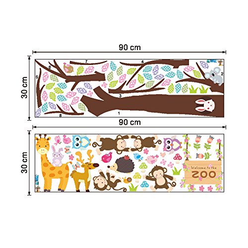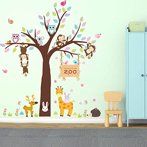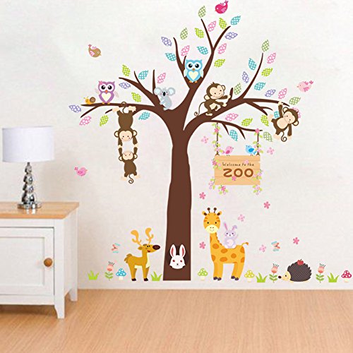 -. Title : Witkey Cartoon Forest Tree Branch Animal Owl Monkey Giraffe Deer Wall Stickers For Kids Rooms Boys Girls Children Bedroom Home Decor