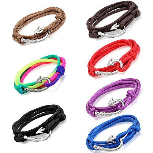 -. Title : 父の日メンズブレスレット[Aroncent](7点セット)リゾート風 ブレスレット 釣りフックデザイン ナイロン製 腕飾り 多彩