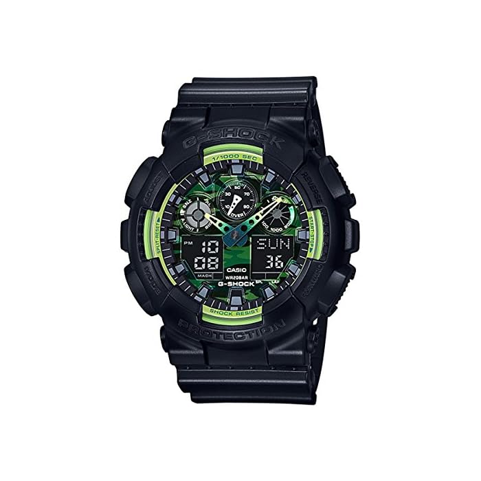 Size (approx) H55 × W51.2 × D16.9mm, Weight (about) 72 g, arm around maximum (approximately) 20.5cm, minimum (approximately) 14cm Specification resin (case), resin (belt) Quartz, 20 water pressure , anti-magnetic watch (JIS1 species), shock structure (resist shock), world time: 48 cities (29 time zones, daylight saving time setting function) + time display of UTC (Coordinated Universal time), time city home features replacement, stopwatch (1/1000 seconds, a total of 100 hours, the speed measurement function (MAX1998unit / h, 2unit / h units), lap / split measurement switching), timer (set unit: 1 minute, set up: 24 hours, measured in seconds , auto-repeat), five alarm (with only one snooze function) time signal, full auto calendar, 12/24-hour display switching, LED light (auto light function, afterglow function, switching afterglow time (1.5 seconds / 3 with sec)), accuracy: ± 15 seconds per month difference, Kotobuki : About 2 years, LED: amber, color: green Kamofura (Dial), black (belt) 1 year Accessories Special BOX, warranty card, manual Casio CASIO G Shock G-SHOCK Quartz Men's Watch watch green Kamofura casual fashion toughness G-SHOCK from the pursuit continues to evolve, New model, which was designed sporty mix the concept appeared. Design based on the brand is the color black, the motif of a color to be used, such as in high-tech sneakers. Minute hand subjected to a gradation at the time, and finished with a color ring, which is often used in sports fashion item. Achieve a colorful color ring by the dial subjected to a camouflage. To design to detail was sticking out. Shines in street fashion scene, is the emergence of New model dressed in a sporty style of the trend.