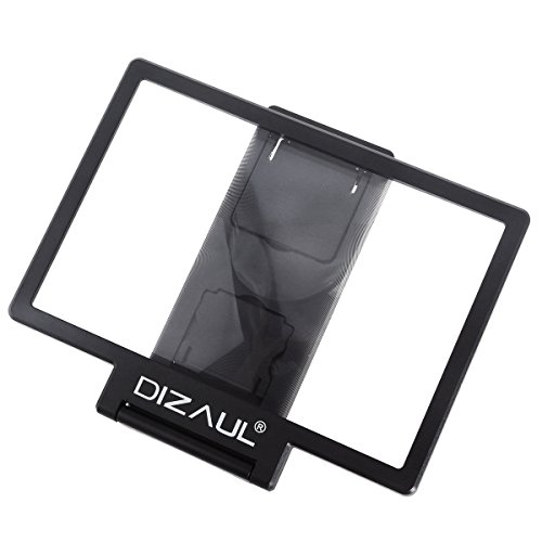 Screen Magnifier,Dizaul® Cell Phone 3D HD Movie Video Amplifier with Foldable Holder Stand for Apple iPhone 6/6s/6 Plus/6s Plus, Samsung Galaxy S6/S6 Edge/S6 Edge+ and All other Smart Phones (Black)