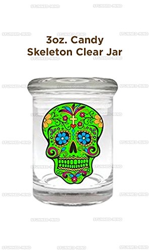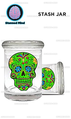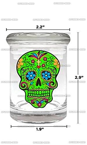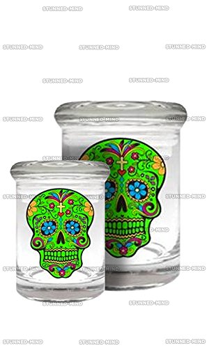 Green Candy Skull 6oz Stash Jar with skull design,Glass Jar,Airtight jar,smell proof jars with storage jar